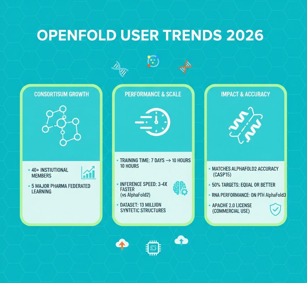 Major pharmaceutical and biotechnology companies integrated OpenFold into research pipelines. Novo Nordisk utilizes the platform for internal discovery pipelines with proprietary data integration.