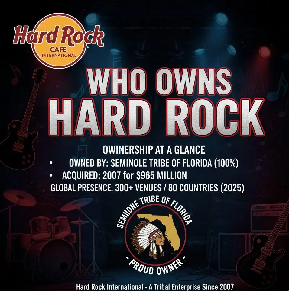 Hard Rock International is owned entirely by the Seminole Tribe of Florida, making it one of the most significant tribal-owned enterprises globally. The tribe acquired the brand in 2007 and has transformed it into a hospitality and gaming powerhouse.