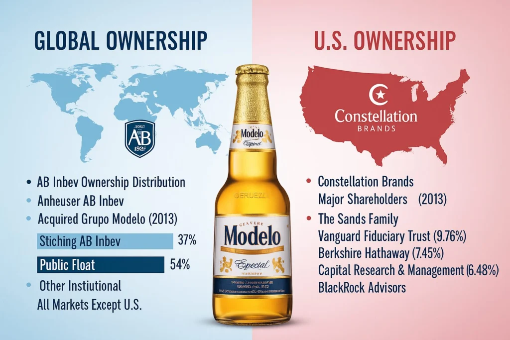 The ownership of Modelo Beer operates through a dual structure involving two major beverage corporations. Globally, Anheuser-Busch InBev serves as the parent company following its 2013 acquisition of Grupo Modelo. However, the United States market operates differently due to regulatory requirements.