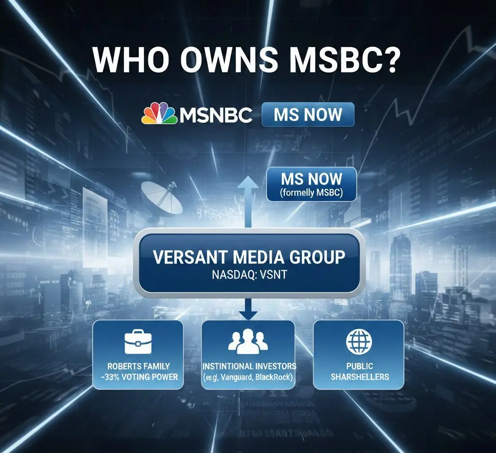 - Versant Media Group (Nasdaq: VSNT) owns MS NOW (formerly MSNBC) following the Comcast spin-off completed on January 2, 2026.