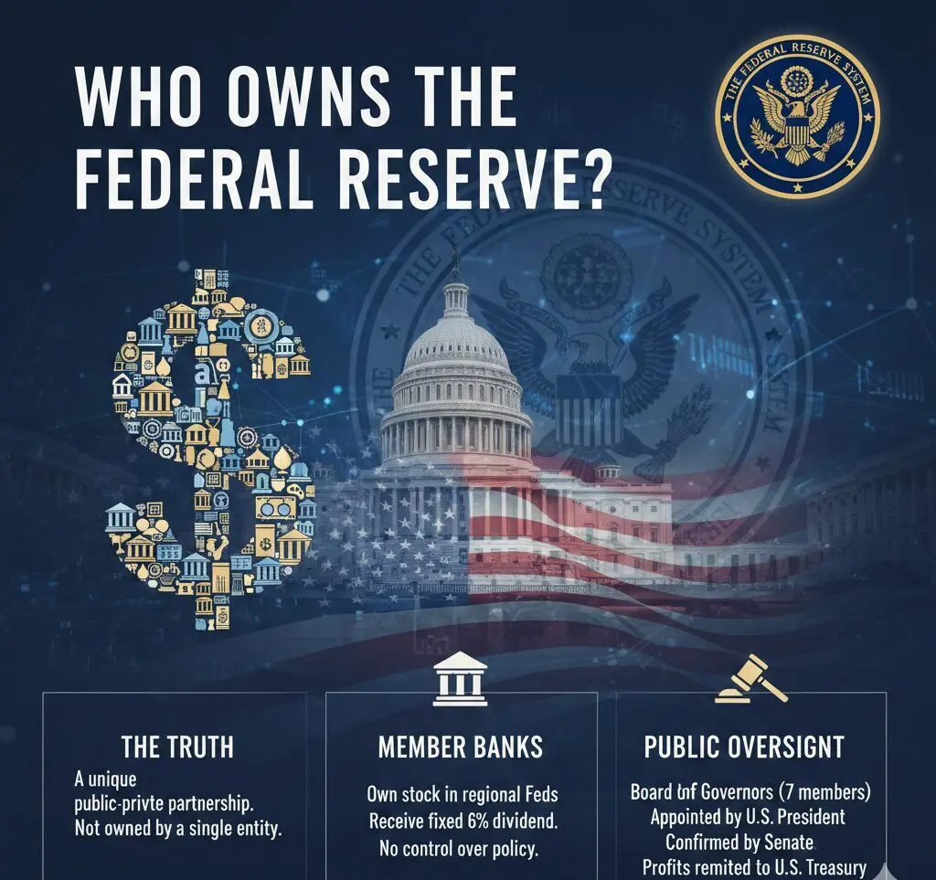 The Federal Reserve is not owned by any single entity, individual, or government body. Instead, it operates as a unique hybrid institution blending public oversight with private participation. The 12 regional Federal Reserve Banks are technically owned by member commercial banks in their respective districts, which are required to purchase stock in their regional Fed bank. However, this ownership does not grant traditional shareholder control or profit-sharing rights.